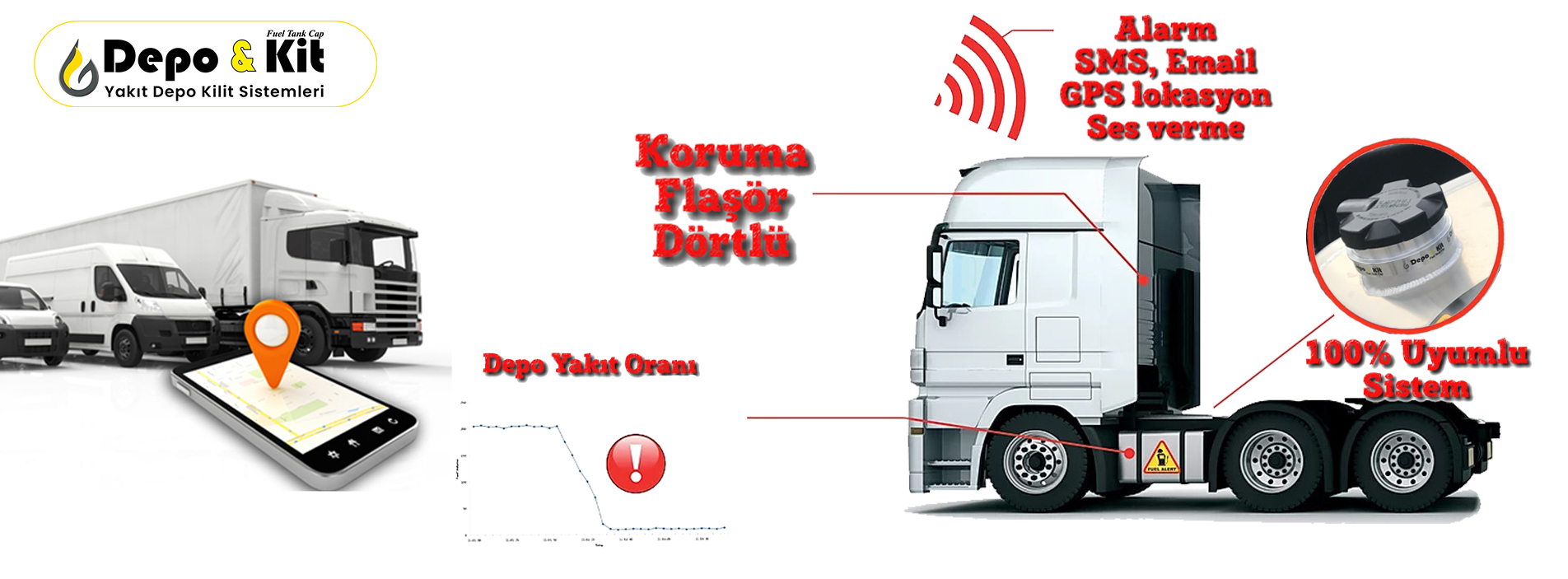 İhtiyaç duyulan bu verileri şirketlere sunmak ve kullanılan ticari araçlardan yapılabilecek yakıt hırsızlığı ve suistimallerini engellemek amacıyla geliştirmiş olduğumuz yakıt güvenlik sistemleri hizmetinize sunulmaktadır. Firmamız geliştirmiş olduğu güvenlik sistemleriyle araçlarda izinsiz yakıt alımlarını %100'e varan oranda engelleyerek firmalara çok önemli avantajlar sağlamaktadır.